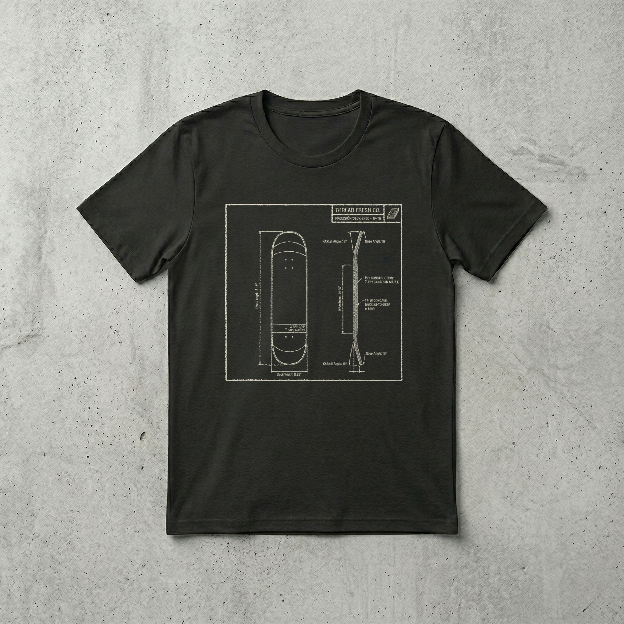 Elevate your kit with the TF-16 Precision Deck Spec Tee. This design features a highly detailed technical schematic of the classic popsicle shape, highlighting the 7-ply...Regular price $25.00 USDSale price $25.00 USD Regular priceUnit price / per -
